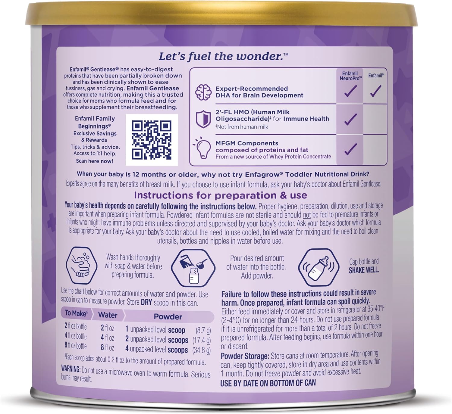 Enfamil Gentlease Child Formulation, Reduces Fussiness, Fuel, Crying and Spit-up in 24 hours, DHA & Choline to help Mind growth, Worth Powder Can, 19.9 Oz